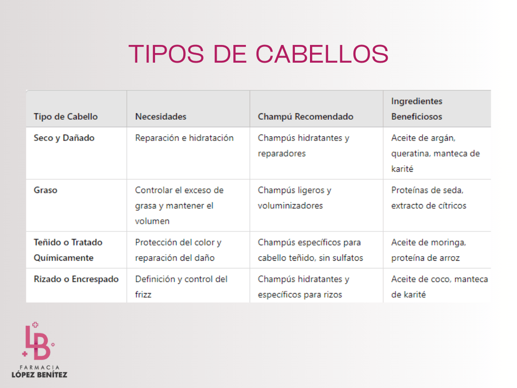 Para elegir el champú adecuado me baso en el tipo de cuero cabelludo que tiene la persona , pero no hay que olvidar el tipo de cabello. Por ejemplo: