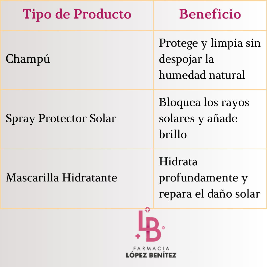 - Te dejo un pequeño cuadro con los tres productos que debemos utilizar para cuidar nuestro cabello sobre todo en verano.